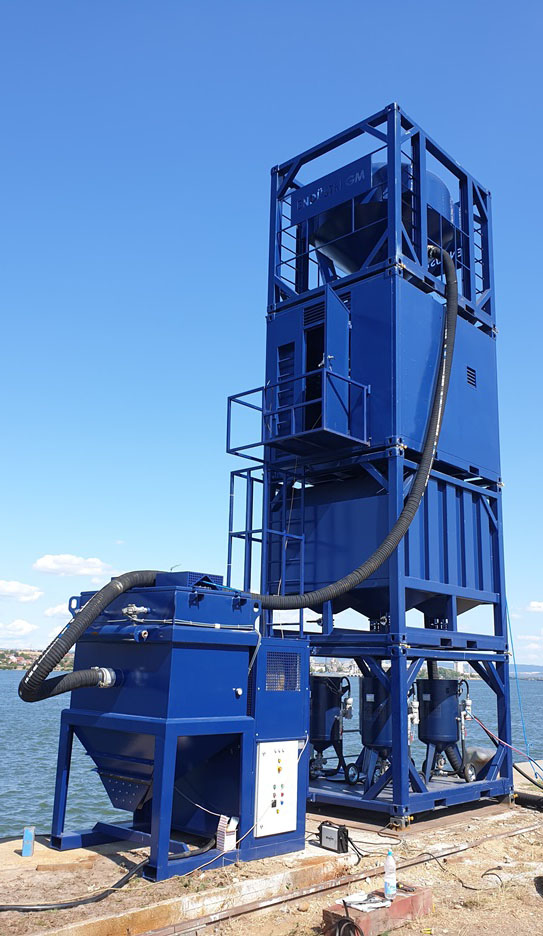 90kw AERZEN vacuum unit provides a recovery rate of 6-15mt/hr, depending on abrasive type and distance.